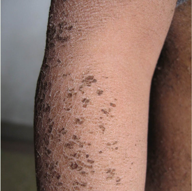 3、患者的皮肤异于常人,堵塞了毛囊和汗腺导管,导致皮脂腺、汗腺分泌障碍,终极使皮肤失去滋润,变得异常干燥。在皮肤发生鱼鳞病病理改变后,皮肤很轻易受到白色念珠菌、金黄色葡萄球菌等皮肤致病菌的侵入,这些致病菌会进一步引起皮肤损伤并造成瘙痒症状,难以忍受的瘙痒症状会使患者忍不住抓挠继发皮肤破损、感染。